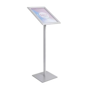 Esponi le tue comunicazioni con la cornice a scatto formato A4 o A3 con angoli vivi a leggio su piantana.